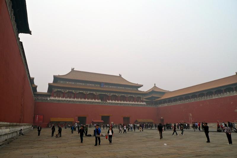 여기까지 오기에 1시간 넘게 걸렸다. 이제 자금성의 반을, 그것도 양쪽은 거들떠도 못보고 중심축만 따라서 일직선으로만 왔는데도 그렇다. 물론 자금성은 넓다해도 직선으로만 빠르게 걸으면 1시간 정도에도 가로지를 수 있다. 그러나 그 양옆으로 펼쳐진 여러 볼거리를 찾아본다면 며칠을 걸려도 힘들다. 그래서 10번은 가야할 건물이라 느낄 수밖에 없다.