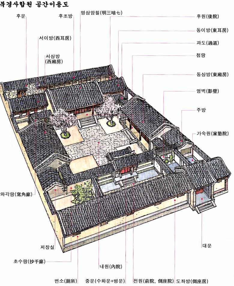 중국 사람들이 저렇게 네모 건물을 좋아했던 것은 베이징 같은 대도시에선 밀집된 주택들의 구획을 나누기도 쉽고 평지여서 우리처럼 지형에 따라 건물을 융통성있게 배치하기 어려웠던 점도 있지만 그보다는 집에 대한 중국 철학 때문이라고 볼 수 있다.