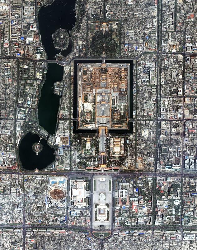 실제 자금성을 위에서 보면 철저한 좌우대칭 중심축 구성이 그대로 드러난다.
